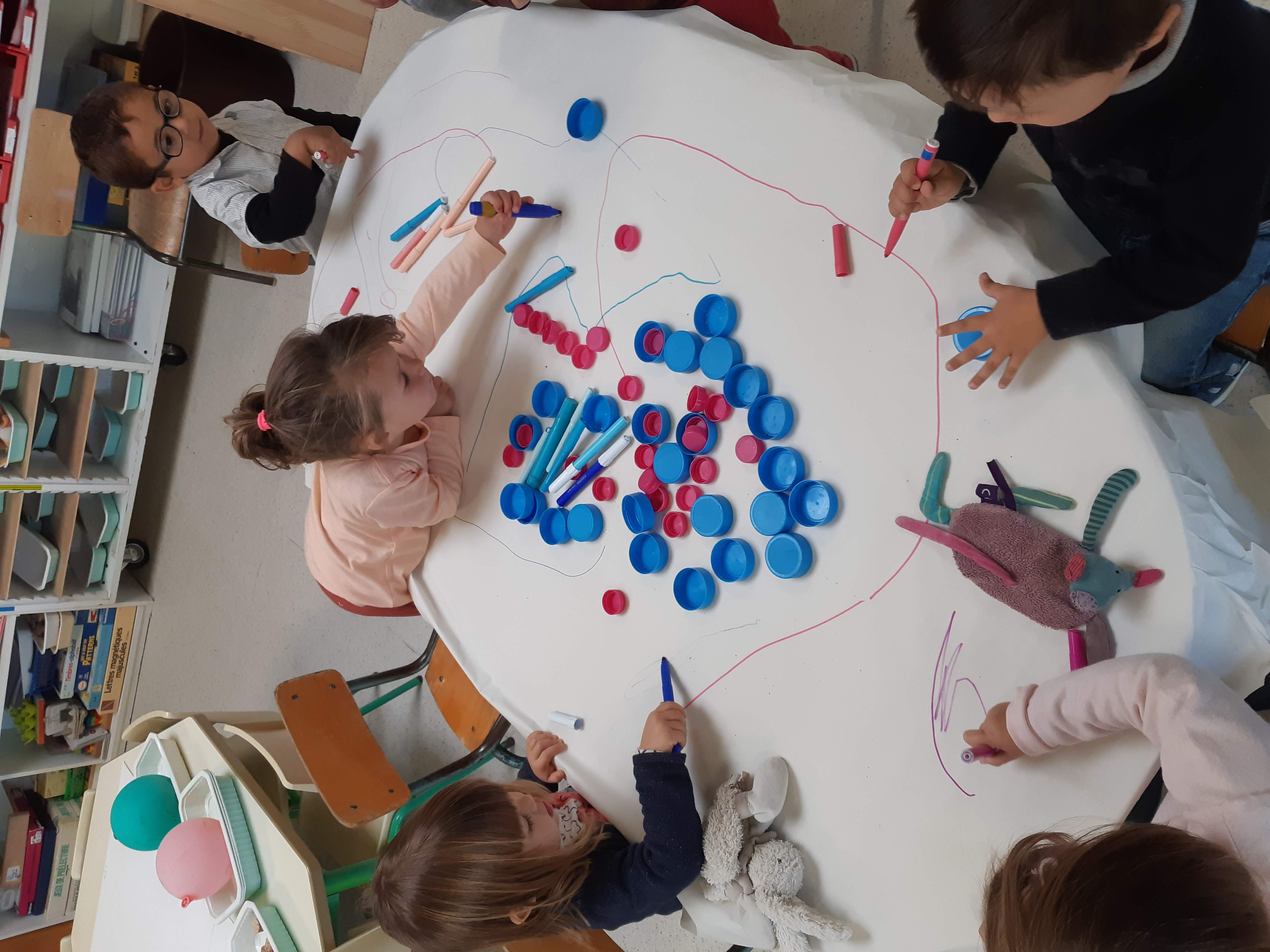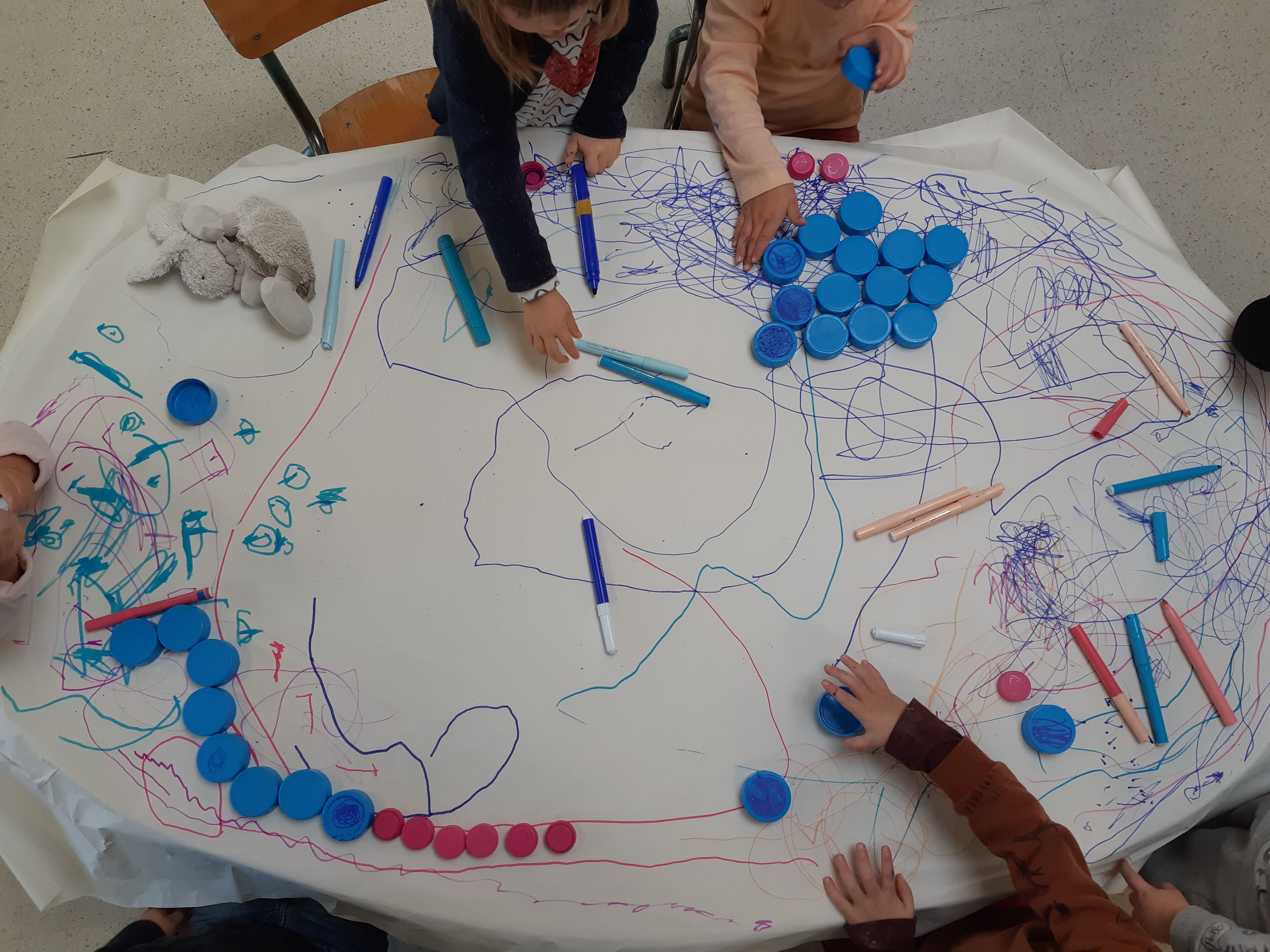 Et les petits ont fait se promener les « enfants » sur la table avec les feutres…